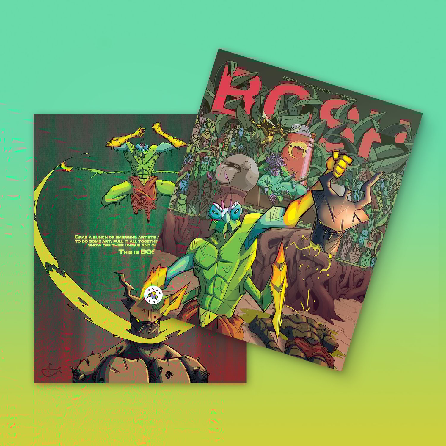 'BOSH' is bigger-er and better-er than ever before, with 64 beautiful pages brimming with comics, illustrations and cartoons! This new format is actually larger, 254 x 203mm, ALMOST A4! Which gives way more space for our amazing selection of artists.
